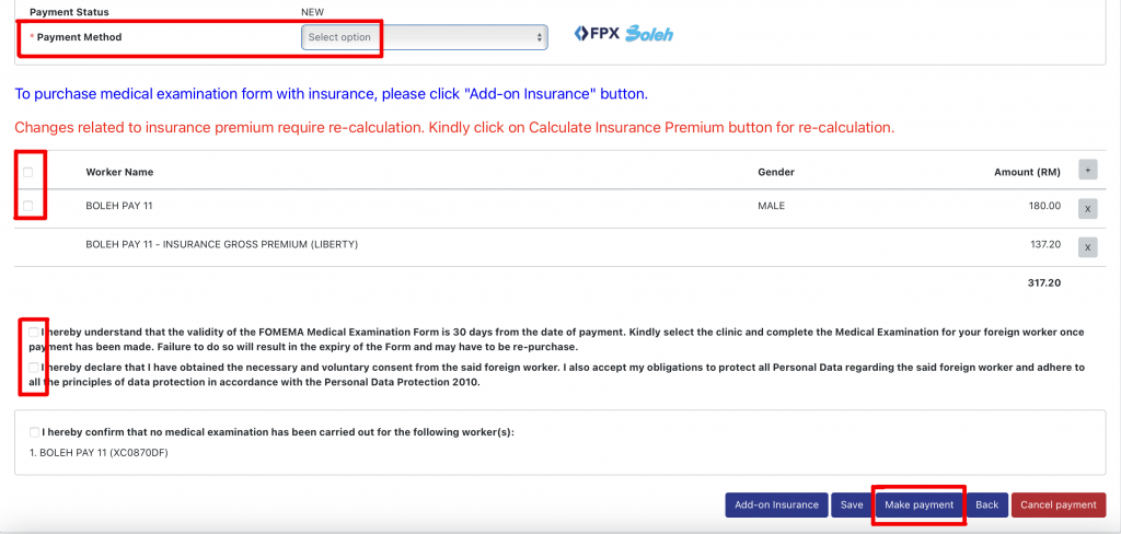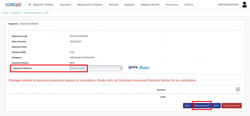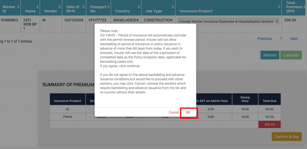Step 10: After payment successful, you can print the invoice and link foreign worker details
