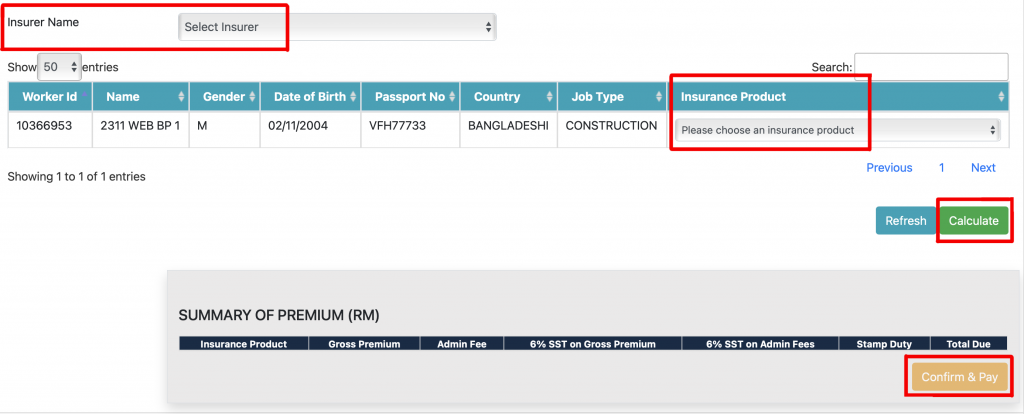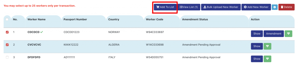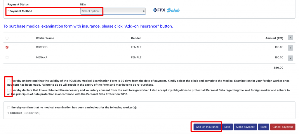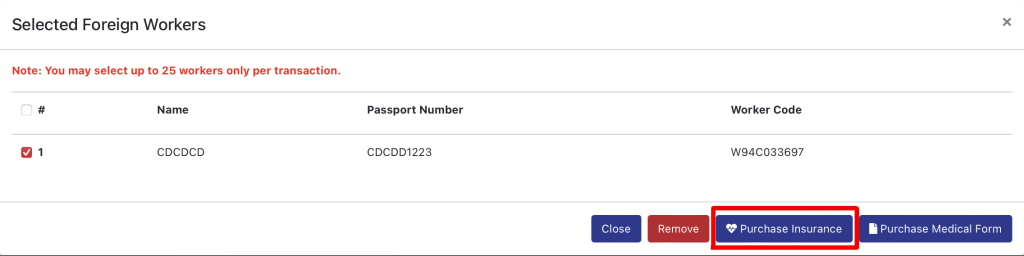 Step 6: Tick worker’s name and click Add-on Insurance